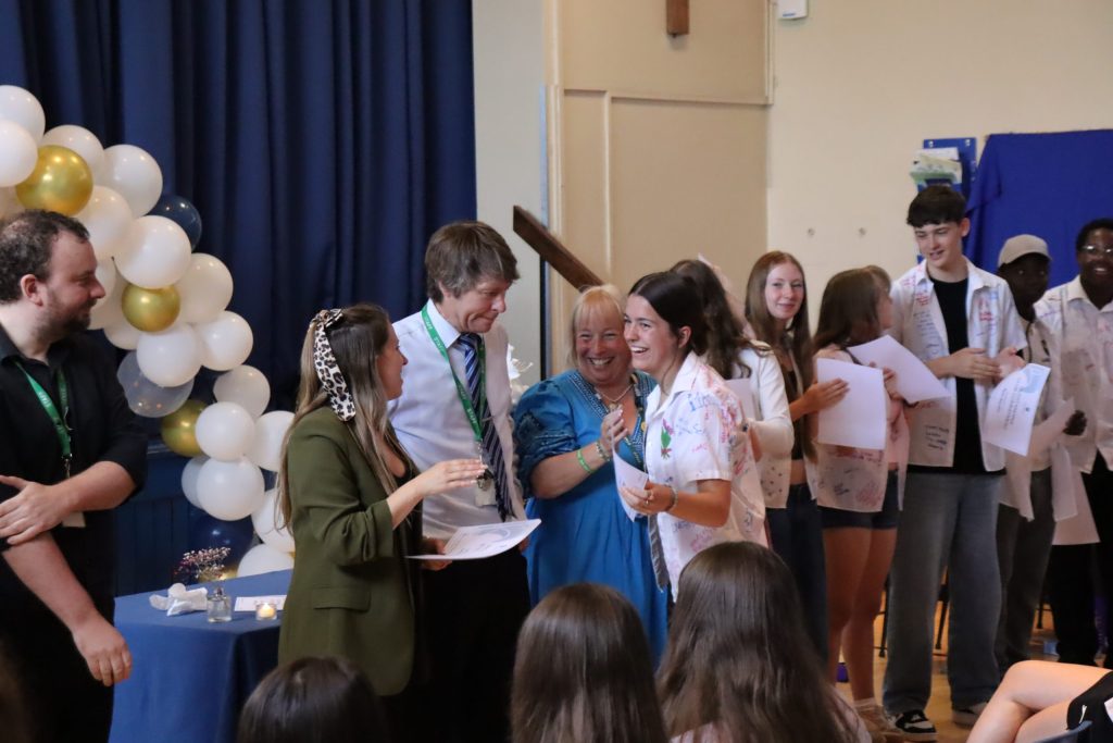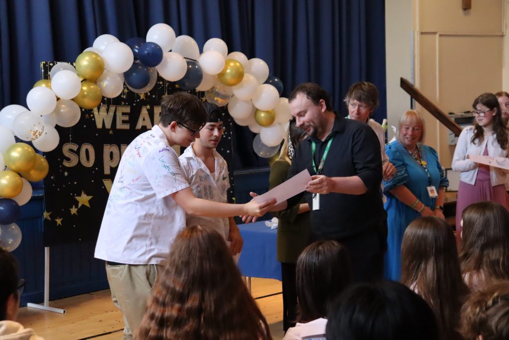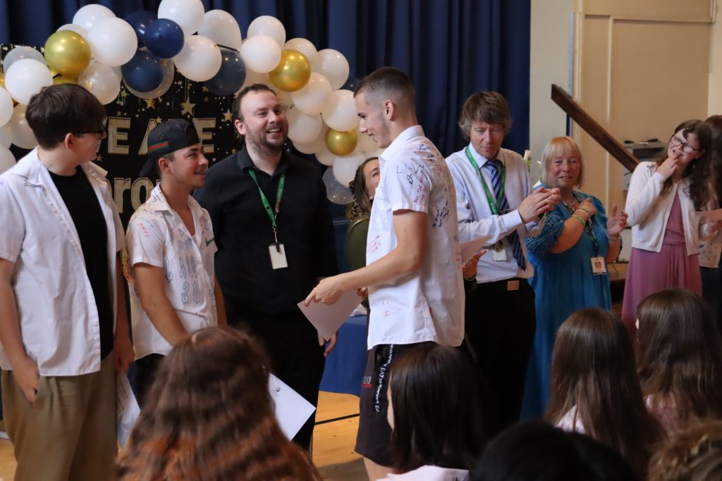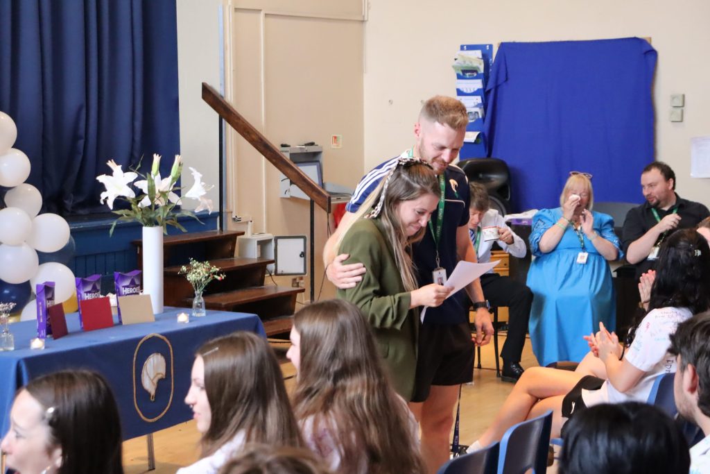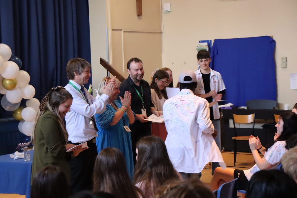 Head of Year Mrs Kenney’s emotional speech was followed by a whole range of staff-voted awards, including Best Role Model, Future Nobel Prize Winner, Future Headteacher, and audience favourites such as ‘Most likely to have their own reality show’, ‘Most likely to be TikTok famous by accident, and ‘Most likely to turn up with no pen, no book, no problem’.