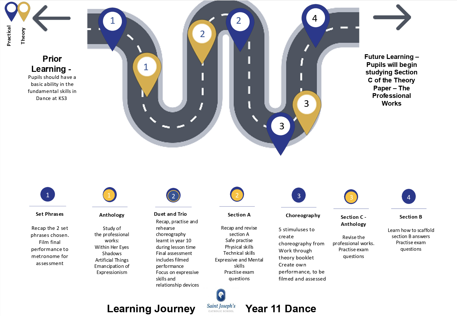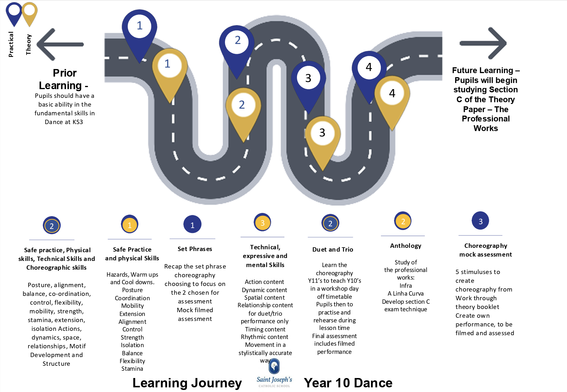 - Knowledge and understanding of choreographic processes and performing skills