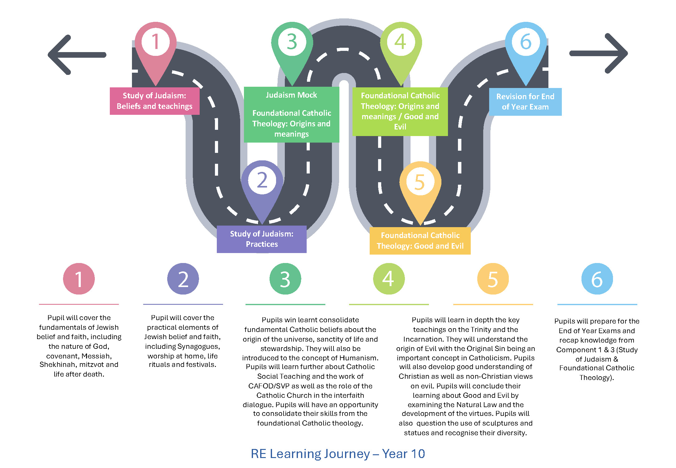 We believe that Religious Studies is an essential and enriching subject that shapes pupils academically, morally, and spiritually. As a core subject in our curriculum, all pupils follow the Eduqas Specification B, which focuses on Catholic Christianity and Judaism. Pupils will be provided with a deep understanding of religious beliefs, practices, and moral perspectives, encouraging them to think critically about ethical issues that affect society today.