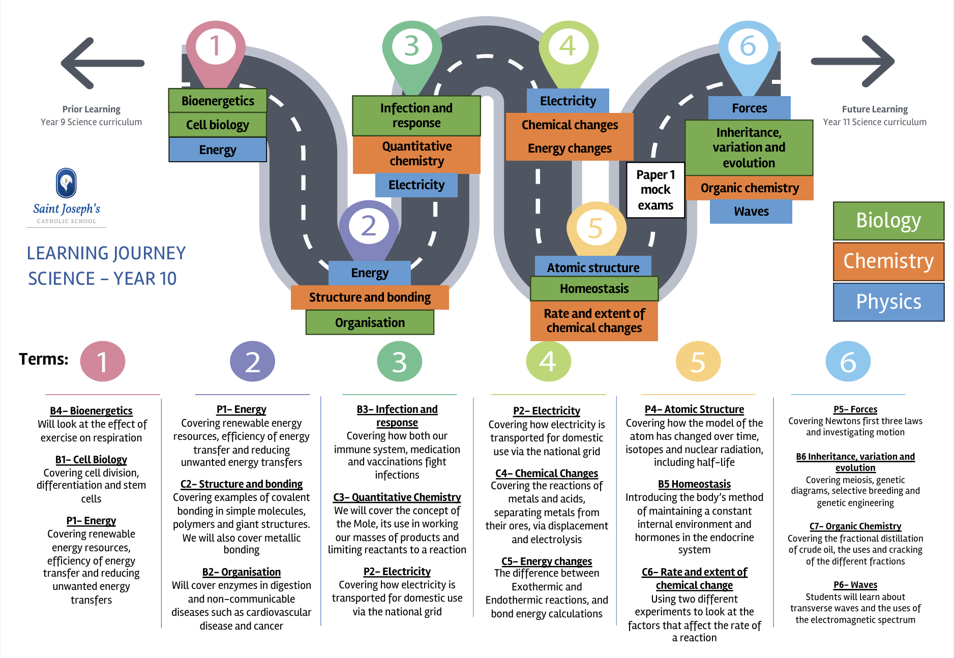 Entries at GCSE are at two levels – Higher Tier (Grades 4 to 9) or Foundation Tier (Grades 1 to 5) – and are assessed externally at the end of Year 11. Pupils will receive 2 GCSE Combined Science grades calculated from the total mark achieved from 6 combined science papers: 2 for Biology, 2 for Chemistry, and 2 for Physics. Each paper is 1 hour 15 mins. Pupils will also complete 21 required practicals during the course.